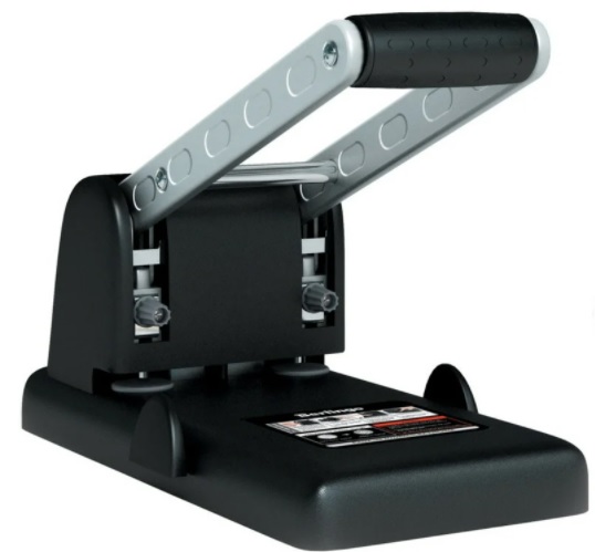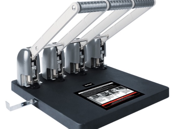 Perforatrice - un dispositif pour perforer les feuilles. L'appareil a des couteaux cylindriques, ils ont des bords dentelés, les éléments de coupe se déplacent à l'aide d'un levier. La feuille de papier est insérée dans la rainure, puis la poignée est pressée et un trou est formé dans le papier. Le matériel perforé est classé dans un dossier où la documentation sera stockée dans des conditions idéales et ne se froissera pas. Tous les perforateurs peuvent être regroupés par type :