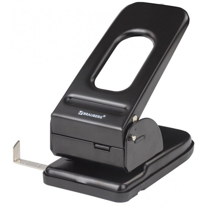 Brauberg Heavy duty est capable de perforer 60 feuilles en même temps, en faisant 2 trous avec un pas de 80 mm. La hauteur du produit, compte tenu de la poignée, est de 185 m, la largeur est de 113 mm. Poids - 1,6 kg. Le corps en métal noir est élégant et la poignée a un trou pour plus de commodité. La papeterie s'intégrera bien dans n'importe quel grand bureau.