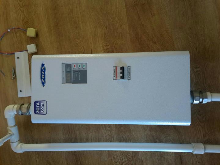 L'ensemble comprend un vase d'expansion d'un volume de 7 litres, des éléments chauffants et une pompe pour faire circuler l'eau dans la canalisation. Sur le panneau, il y a un écran, un thermomètre et un indicateur de puissance. Le contrôle de la puissance est effectué par un régulateur à 4 étages. Le liquide de refroidissement peut être chauffé jusqu'à 85 degrés. L'alimentation électrique de la chaudière électrique est connectée à un réseau triphasé.