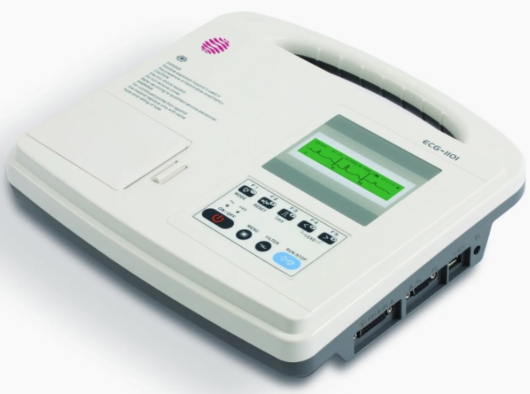 Électrocardiographe à 12 canaux du fabricant russe "Monitor".Le fabricant propose différentes configurations de l'appareil, qui peuvent différer en présence des options suivantes : logiciel d'interprétation automatique des résultats d'une étude diagnostique, USB, modules GSM, port COM, électrodes pour prendre l'ECG des enfants, etc. Selon les options incluses dans le kit, respectivement le coût change. Le modèle est équipé d'un moniteur graphique TFT 116x88 mm, qui affiche des informations techniques sur le fonctionnement de l'appareil, des données sur le cardiogramme actuel, etc. L'appareil permet l'enregistrement simultané de 6 ou 12 dérivations. Dans ce cas, il est possible d'imprimer 1, 3, 4, 6 mines au format habituel et 12 mines en travers de la feuille. Vitesse d'impression de 5 à 50 mm/s. Le fonctionnement de l'appareil est contrôlé à l'aide d'un clavier à membrane à 14 touches. Le cardiographe a deux modes de fonctionnement - automatique et manuel. Dans ce cas, en mode manuel, vous pouvez configurer l'appareil individuellement pour 10 utilisateurs. L'appareil fonctionne à partir de 100-224 V CA, de 12-16 V CC ou de la batterie intégrée.