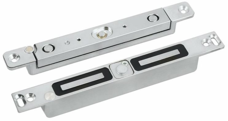 La conception de tous les types de serrures électromagnétiques est la même : un corps avec un électroaimant puissant, une ancre métallique où se forme un champ magnétique et un joint en caoutchouc pour éviter le claquement lors de la fermeture.