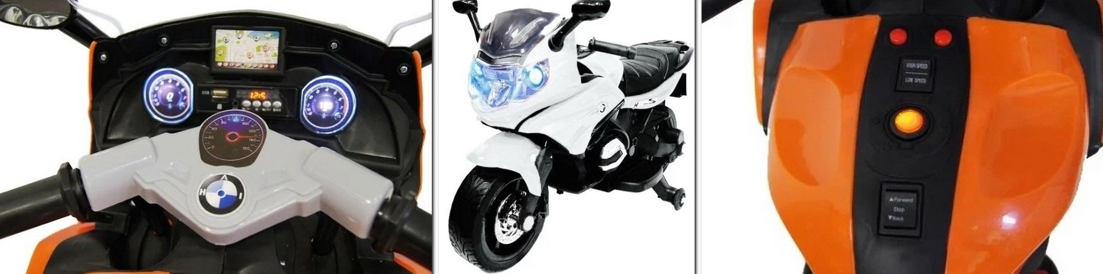 Le modèle dans la configuration dispose d'une télécommande qui permettra aux adultes d'assurer l'enfant pendant la conduite.La conception a des roues de sécurité supplémentaires qui donnent de la stabilité à l'équipement. Cela commence par un bouton. La moto électrique est disponible en deux coloris : rouge et blanc, elle conviendra donc aussi bien aux filles qu'aux garçons. Grâce à l'entrée USB, l'enfant peut écouter ses chansons préférées pendant le voyage. Quoi d'autre y a-t-il: rétroviseurs, pédale d'accélérateur, phares et klaxon.