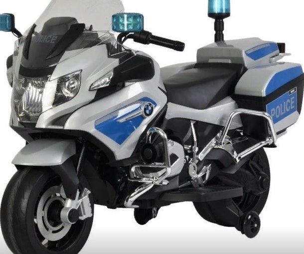 Conception réaliste de moto de police. Il est équipé d'un système de changement de vitesse à plusieurs étages; deux petites roues situées sur les côtés opposés de la structure, assurant ainsi la sécurité et la stabilité du véhicule pendant la conduite ; deux coffres à bagages; clignotants et phares, affichage électronique de la vitesse, rétroviseurs et divers boutons. Démarre avec une clé.