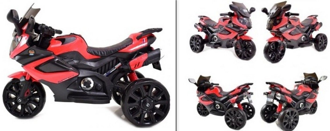 Une moto électrique est idéale pour un enfant de 5 ans. Il est fabriqué dans un style moderne et doté de toutes les caractéristiques nécessaires pour un mouvement confortable. Description externe : le boîtier est en plastique durable, qui protège le mécanisme des dommages physiques. Il y a des rétroviseurs, des phares avant et arrière, une pédale d'accélérateur et un bouton pour remonter le vélo. De plus, il y a un écran qui affiche les informations nécessaires. Grâce aux ports USB, pour un lecteur MP3 et une carte mémoire, l'enfant peut profiter de sa musique préférée tout en conduisant dans la rue ou à la maison. La couleur du tricycle est rouge et noir, il convient donc aux filles et aux garçons.