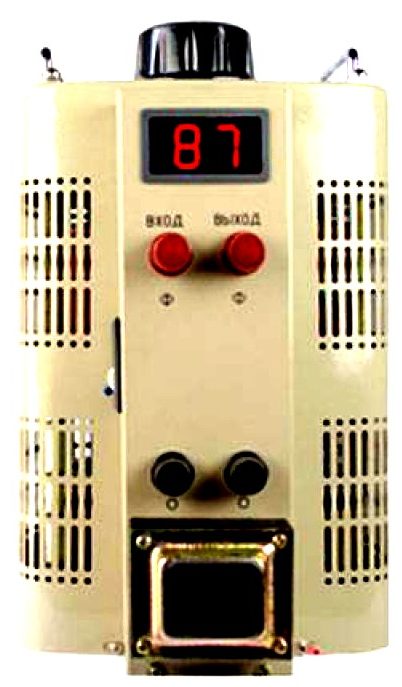 Produit d'un fabricant national. Il est utilisé pour tester les appareils électriques modernes. Il peut être utilisé comme structure de protection pour les maisons privées. Gère les surtensions soudaines. La durée de vie élevée et la qualité de fabrication correspondante parlent en faveur de ce modèle. Un réglage manuel jusqu'à 250 Volts est autorisé. Le voltmètre à aiguille est intégré au panneau avant de l'appareil.