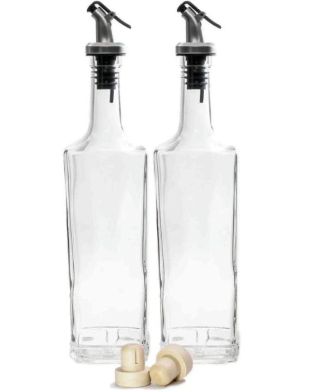 L'ensemble se compose de deux bouteilles en verre transparent de section carrée, chacune d'un volume de 500 ml, la largeur de la bouteille est de 7,1 cm.En plus des bouchons, chacun d'eux est livré avec un distributeur. Peut être utilisé pour les sauces fines et moyennement épaisses. Les parois des bouteilles sont épaisses et durables.