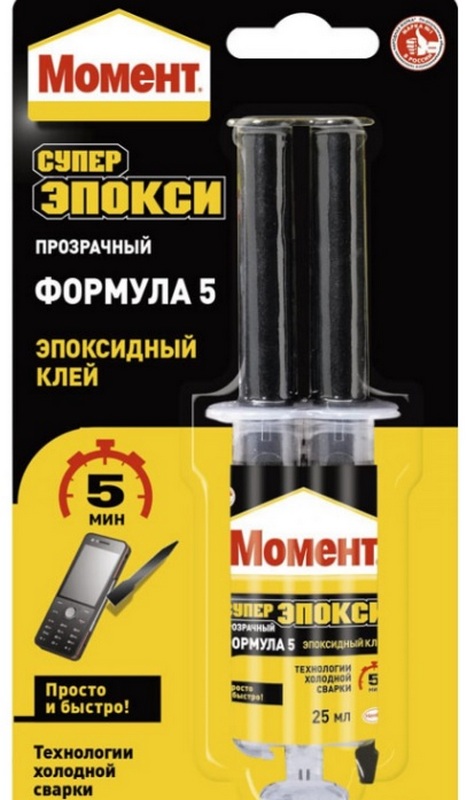 Il s'agit d'un adhésif époxy fiable et rapide dans une seringue avec un mélangeur qui peut durcir en 5 minutes. Le produit est immédiatement prêt à l'emploi. L'accessoire mélangeur spécial dispose d'une technologie de mélange interne, qui garantit que tous les composants sont mélangés rapidement et correctement. Capable de fournir une résistance accrue à la chaleur, ne rétrécit pas et ne se dilate pas lorsqu'il est solidifié, 100% résistant à l'humidité, très résistant à diverses huiles et solvants. Convient pour le collage combiné du verre et de la fibre de verre, de la porcelaine et de la céramique, de la faïence et du cristal, du métal et du bois. Il est possible de coller avec un traitement ultérieur du marbre, de la pierre, du béton, de tous les types de métaux, de leurs alliages, du PVC rigide, du polystyrène, du plexiglas, du polycarbonate, du polyamide, de l'ABS et d'autres plastiques. Idéal lorsqu'il est utilisé pour réparer les pièces manquantes, le remplissage, les bosses, les éclats, les fissures. Peut être utilisé pour restaurer tous les matériaux de construction, carrelage, marbre, ciment, pierre, béton, brique, pierres naturelles et artificielles, etc. Le coût recommandé pour les chaînes de magasins est de 207 roubles.