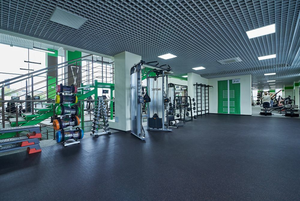 Gym. La salle spacieuse et lumineuse est située sur deux étages du bâtiment du club et est équipée de simulateurs modernes de haute technologie pour différents types de charges.