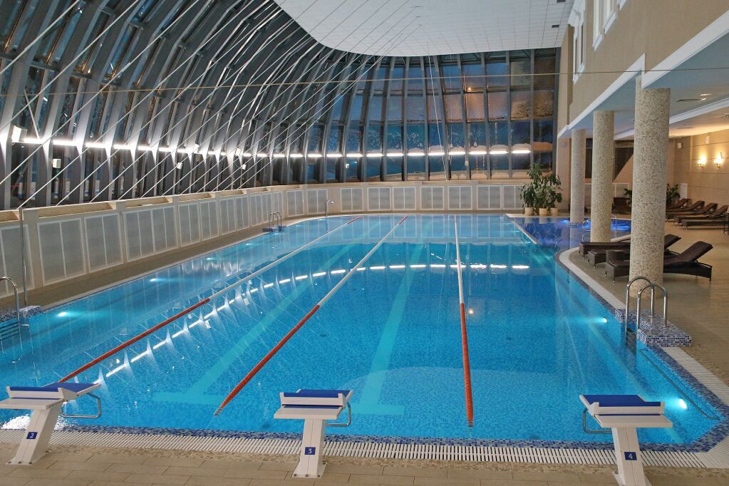 Aquacomplex. Comprend une grande piscine (25 mètres), un bassin pour enfants, un jacuzzi, un hammam turc et un sauna finlandais. Les types d'activités nautiques suivants y sont organisés :