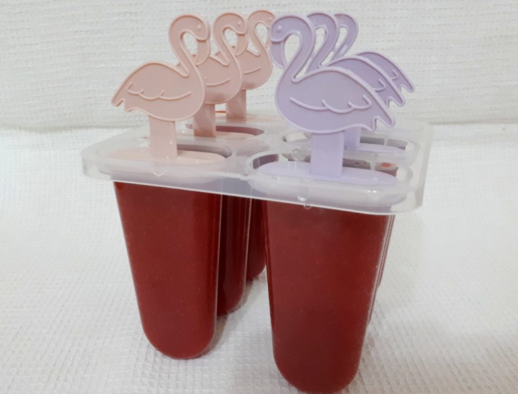 Autre modèle de la société Multidom, également fabriqué dans un matériau de haute qualité sans danger pour la santé, le manche des bâtons est en forme de flamant rose. Les bâtonnets-couvercles sont insérés dans les cellules après que le liquide y ait été versé, congelé, il est facilement retiré des cellules. Avant utilisation, le récipient doit être soigneusement lavé avec un détergent. L'entreprise produit également un moule à bâtonnets de flamants roses à 4 compartiments, qui est également populaire auprès des consommateurs.