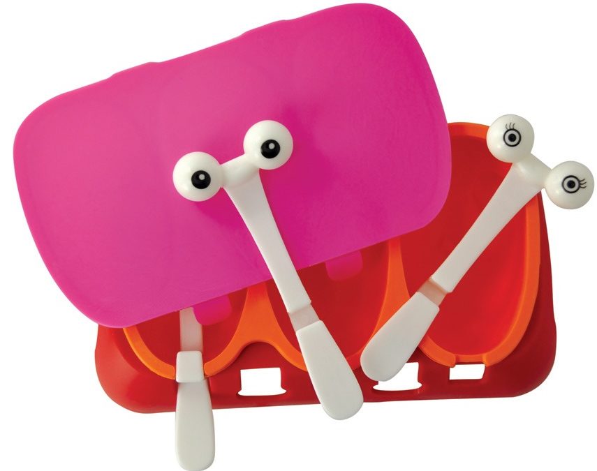 La société britannique Mustard est engagée dans la production de produits de qualité dans divers domaines, notamment les accessoires de cuisine. La conception du modèle a été développée spécifiquement pour le public des enfants, le conteneur a trois compartiments, qui sont accompagnés de bâtons avec des yeux. Les sections de forme ovale sont en silicone de qualité alimentaire, ce qui simplifie le processus de retrait du produit fini.