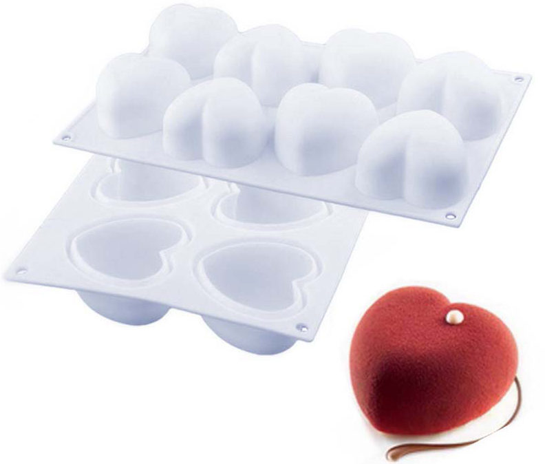 La société italienne Silikomart est engagée dans la production de formes originales pour les desserts. Le modèle a 8 cellules qui sont faites sous forme de coeurs. Fabriqué à partir de silicone de qualité alimentaire. Le produit est multifonctionnel, il convient aussi bien à la fabrication de glaces qu'aux desserts nécessitant un traitement thermique. Le récipient est facile à nettoyer, mais les fabricants donnent quelques recommandations d'utilisation, par exemple, il ne doit pas être placé sur une source de chaleur, le dessert obtenu ne doit pas être coupé sans le retirer du moule. Avant utilisation, il est recommandé de lubrifier le moule avec de l'huile.