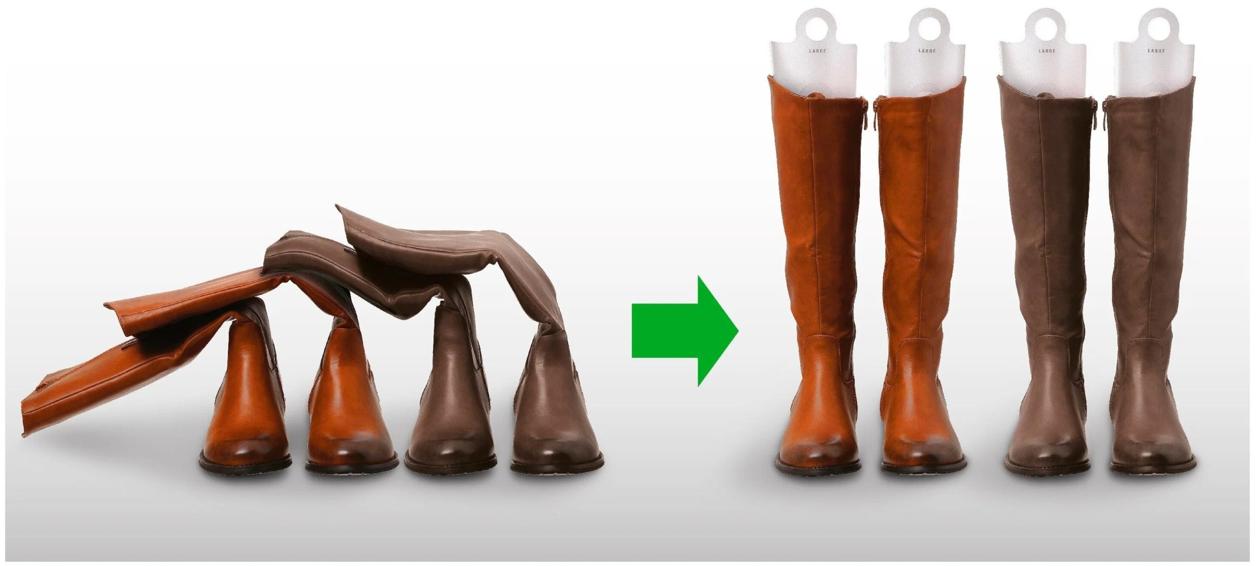Il s'agit d'un simple support de formulaire pour l'intérieur de l'arbre qui aide à les maintenir en position debout.Il ne permet pas la formation de plis et maintient également une apparence soignée des bottes grandes ou moyennes. Le produit se plie bien, il peut rentrer même dans de petites chaussures.