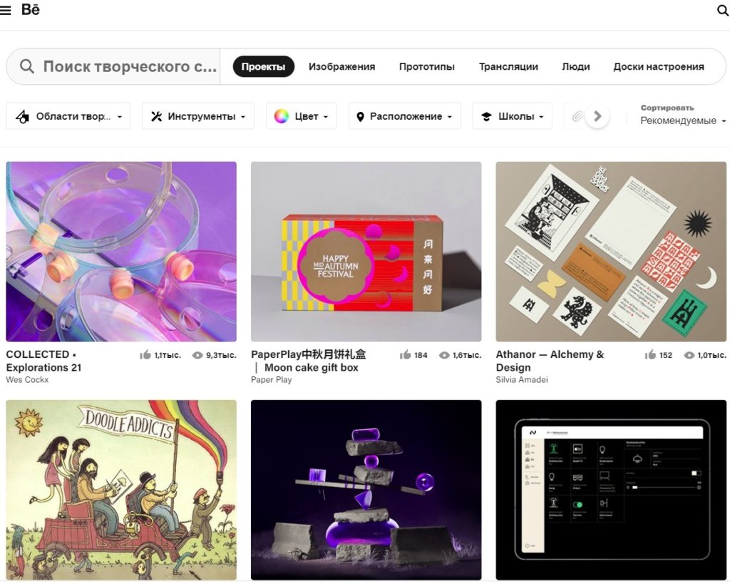 Ici, la note est accumulée en raison du nombre total d'avis positifs, et plus il y en a, plus les chances d'être attiré par un grand projet sont élevées. En plus de la fonctionnalité standard, Behance a les capacités d'un réseau social pour communiquer avec d'autres concepteurs de plateformes et partager des expériences.Dans la section des offres d'emploi, vous pouvez vous familiariser avec les principaux profils de spécialistes de grande réputation.