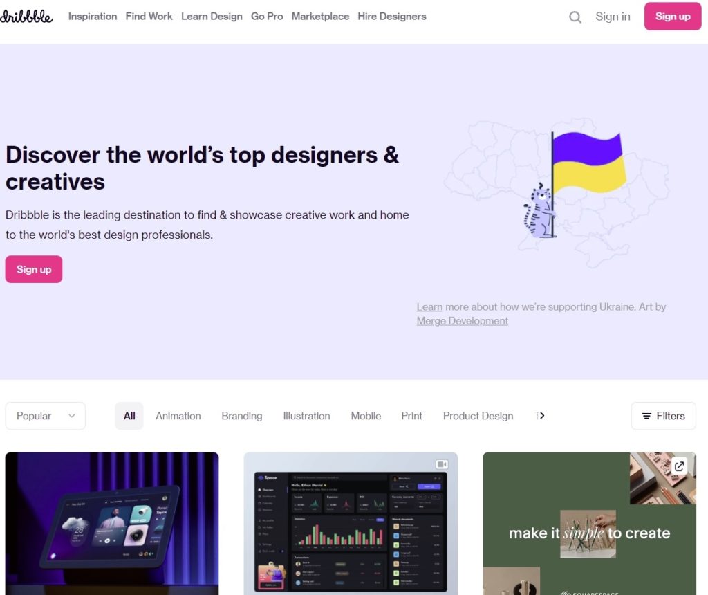 Réunit illustrateurs, graphistes et webdesigners, visualiseurs 3D. Les pigistes publient des portfolios et évaluent le travail de personnes partageant les mêmes idées, gagnant ainsi une réputation. Il s'agit d'une plate-forme pratique qui vous permet de vous exprimer auprès de la communauté du design et de vous inspirer en regardant les projets des autres participants. Ici, vous pouvez créer votre portefeuille, obtenir de nouvelles commandes, ainsi que profiter de l'opportunité d'un réseau social pour la communication. Une caractéristique de Dribbble est la possibilité de fragmenter le placement d'un projet terminé ou en cours de développement, tout en se concentrant sur un élément spécifique.