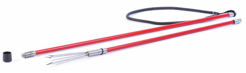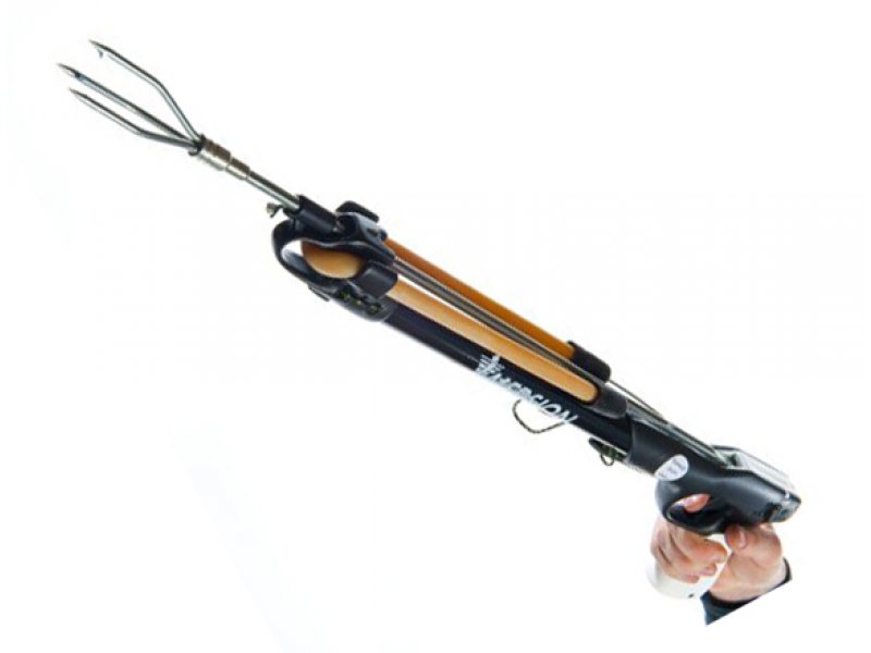 C'est une prison modernisée. La proie n'a pas besoin d'être battue à la main - la défaite est faite par la force de compression du caoutchouc étiré. L'anneau attaché au harpon est mis sur la main et étiré, mais dès que la lance est relâchée, elle vole déjà vers la cible. La portée de la défaite peut aller jusqu'à 1 m, mais il y a suffisamment de poissons dans l'eau, ce qui permet au chasseur d'atteindre une telle distance. Le modèle est pliable et facile à transporter.