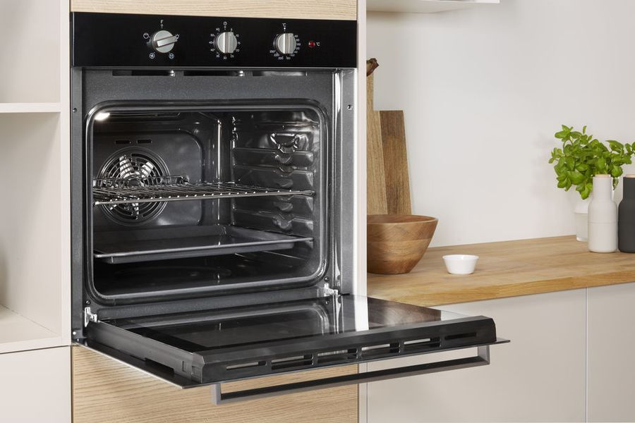 Un modèle indépendant convient à une famille moyenne - le volume de travail de la chambre est supérieur à 55 litres. Le fabricant a équipé l'appareil d'un système d'auto-nettoyage. La commande mécanique est effectuée à l'aide de commutateurs rotatifs. Le fabricant a équipé l'appareil de trois modes de cuisson : classique, gril électrique, tournebroche. Pour plus de confort, la chambre intérieure est équipée de rails télescopiques, qui à leur tour ont une finition chromée. Une fenêtre à double vitrage est installée dans la porte amovible, ce qui assure une bonne isolation thermique.