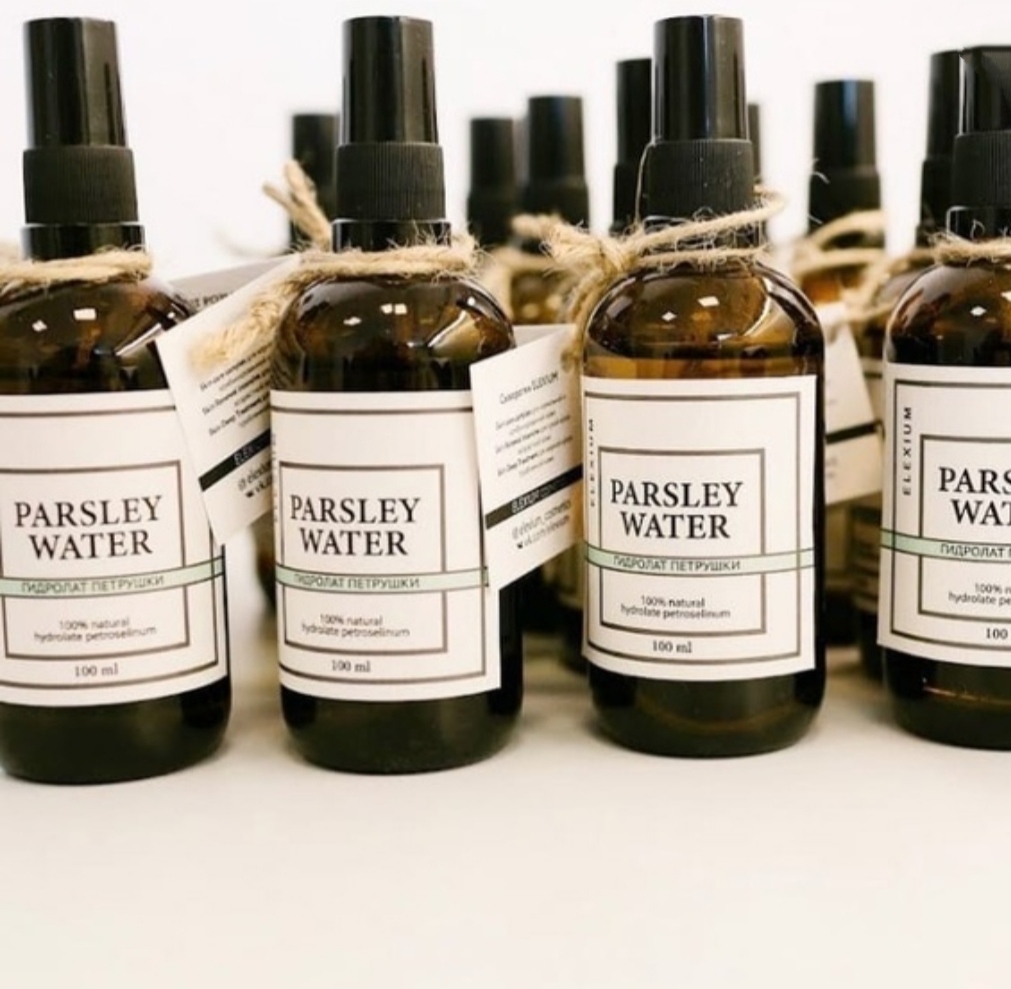 - ELEXIUM COSMETICS - jeune marque russe de cosmétiques, présente 5 références : Sauge, menthe, persil, rose et hydrolat de cyprès.