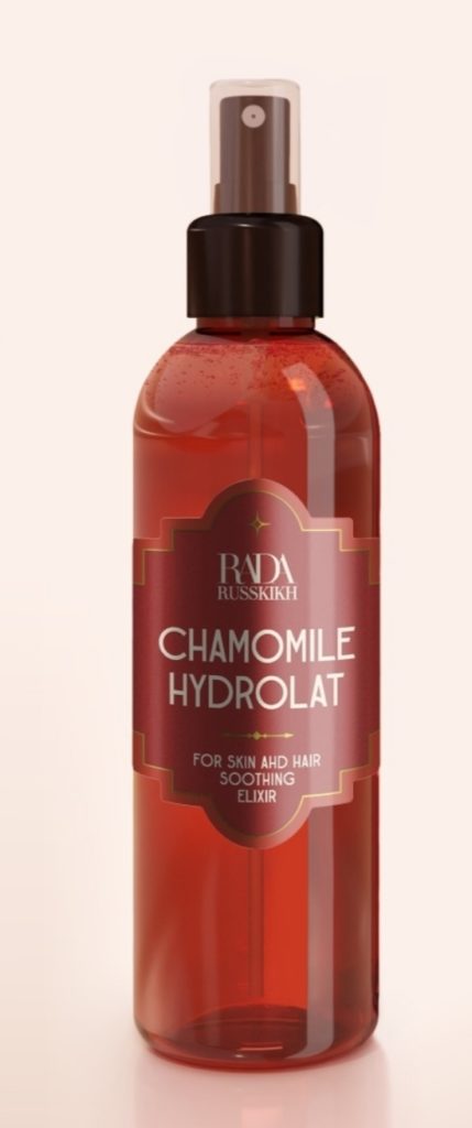 Rada Russkikh Eau cosmétique hydrolat de camomille pour le soin du visage et des cheveux, 100 et 200 ml.