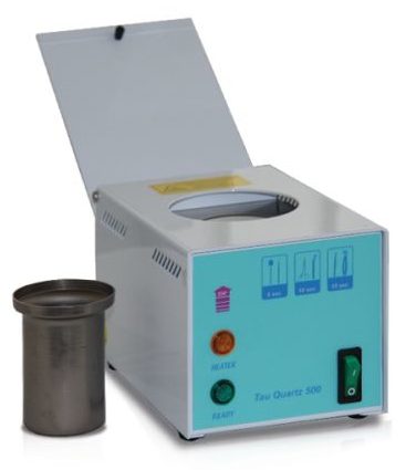 Tau Quartz 500 est un boîtier métallique de forme carrée aux dimensions de 13 x 16 x 13,5 cm.De l'extérieur, l'appareil est équipé d'un couvercle et d'un panneau de commande, et à l'intérieur se trouve un récipient de stérilisation d'un diamètre de 6,2 cm et une hauteur de 5 cm les produits sont réalisés à une température de 230 degrés. La durée d'un cycle est affectée par la portée de l'instrument : miroirs et sondes - 2 s, aiguilles et limes endodontiques - 5 s, instruments chirurgicaux - 10 s.