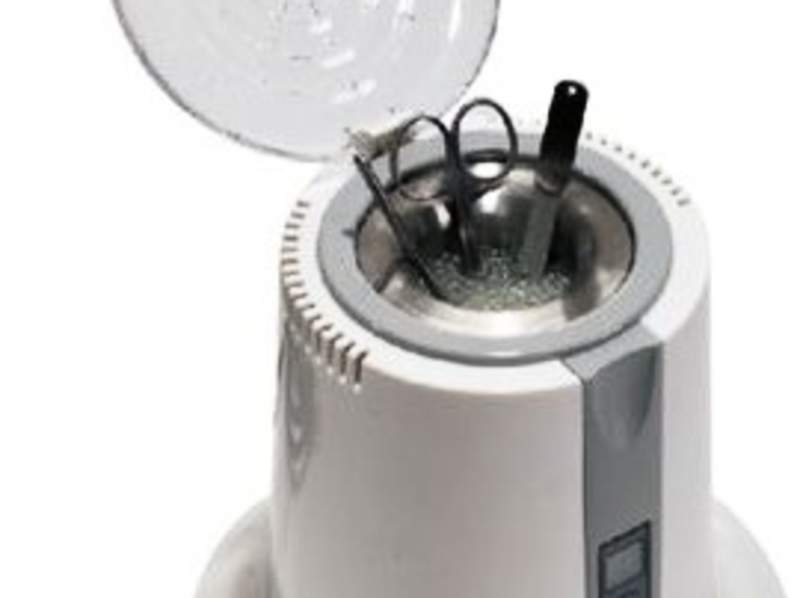 Tout d'abord, il s'agit d'un appareil qui appartient à la catégorie des appareils peu coûteux et abordables (jusqu'à 1000 roubles) avec une bonne qualité de fonctionnement. L'appareil a un seuil de température maximale pas particulièrement élevé - 180 degrés, mais en même temps, il nettoie complètement les surfaces lisses des appareils en acier inoxydable. Complet avec l'appareil, un sachet de billes de quartz est fourni, suffisant pour un remplissage du flacon. Le stérilisateur a une apparence chère, il est fait de plastique durable avec un couvercle fixe de haute qualité. L'appareil fonctionne sur secteur (puissance 100W), fournit une prise durable, un bouton d'alimentation et un indicateur vert vif.
