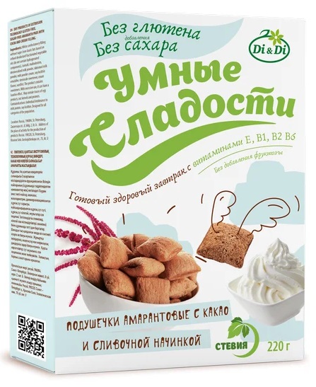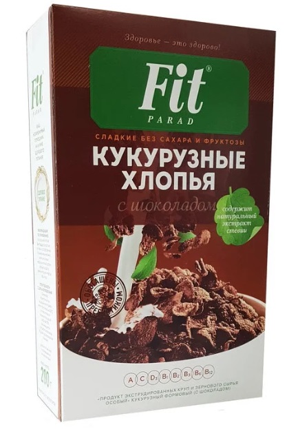 Ingrédients : garniture de confiserie blanche sans sucre (matières grasses de type non laurique à base d'huiles végétales fractionnées désodorisées raffinées (ne contiennent pas de composants hydrogénés), isomalt, maltodextrine, lactosérum en poudre déminéralisé, poudre de lait écrémé, crème de lait en poudre, émulsifiant de lécithine de soja, stévioside édulcorant, arômes crème, vanilline), farine de riz grossière, farine d'amarante grossière, farine de maïs finement moulue, eau potable, poudre de cacao, topinambour séché, sel, mélange vitamino-minéral "Ear Forte" (mononitrate de thiamine, riboflavine, chlorhydrate de pyridoxine, nicotinamide , acide folique, sulfate de fer, antioxydant - acide ascorbique, maltodextrine).