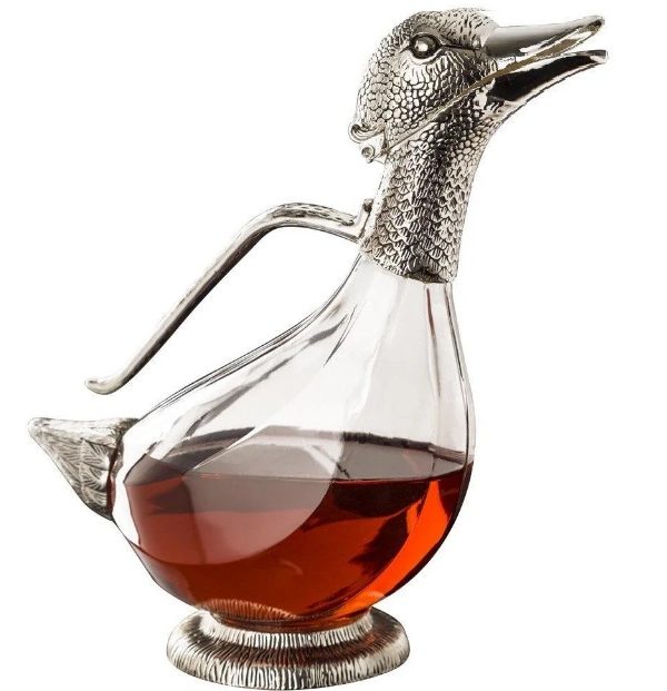 La carafe canard en verre et en acier inoxydable provient de la célèbre société Regent Silverware Manufacturing Ltd, célèbre pour ses produits en verre trempé extrêmement solides et durables. Le produit est fourni dans une boîte cadeau contenant 750 ml de boissons alcoolisées fortes. Dimensions hors tout du produit (voir) : 26/11/26.