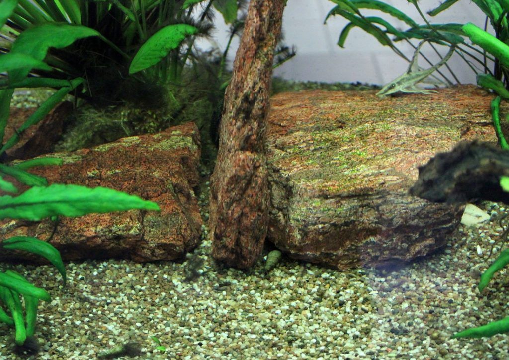 Ensuite, le sol peut être placé au fond de l'aquarium, en le disposant à la fois en une couche uniforme et en biais pour créer le relief souhaité. La meilleure hauteur de couche est d'environ 7 mm. Une couche plus épaisse augmente la pression sur les parois de l'aquarium et sa perméabilité à l'eau se détériore également. Lors de la pose d'un sol grossier - cailloux, graviers, l'épaisseur de la couche peut atteindre 15 cm.Ce type de substrat retient bien le relief.