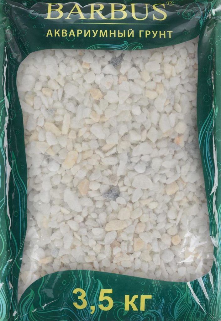 Conçu pour un aquarium d'eau douce, c'est une mie de pierre (marbre) d'origine naturelle. Il est produit par le fabricant russe Barbus et est de couleurs et de fractions diverses - il existe un apprêt blanc, noir et coloré. La taille des particules est également variable - de 2-5 mm à 5-10 mm, ce qui permet de l'utiliser pour des aquariums de différentes tailles.