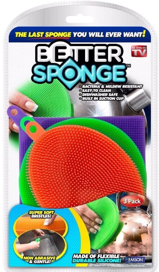 Éponge en silicone réalisée sous la forme d'une mitaine. Il est utilisé comme gant de cuisine, ainsi que pour nettoyer les surfaces, les légumes et les fruits. Fonctionne efficacement à n'importe quelle température. Ne pas nettoyer avec des brosses abrasives et des fluides agressifs. Il peut y avoir une légère odeur lors de la première utilisation. Prix : 334 roubles.