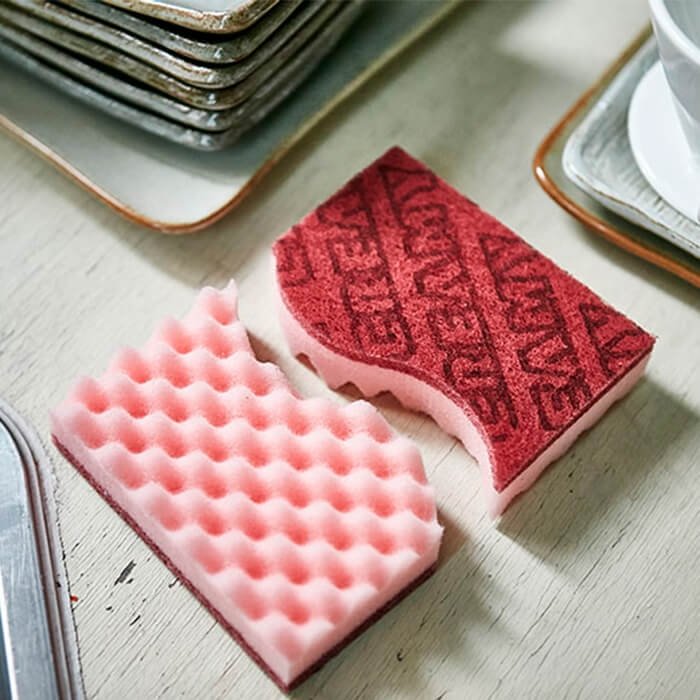 Une option universelle pour nettoyer n'importe quelle surface dans la cuisine et pas seulement. En raison des grands pores forment une mousse dense. La taille optimale est bonne à tenir dans la main, ne glisse pas et ne cause pas d'inconvénients. Ne contient pas de fibre d'acier. Dimensions : 6x9 cm Prix : 62 roubles.