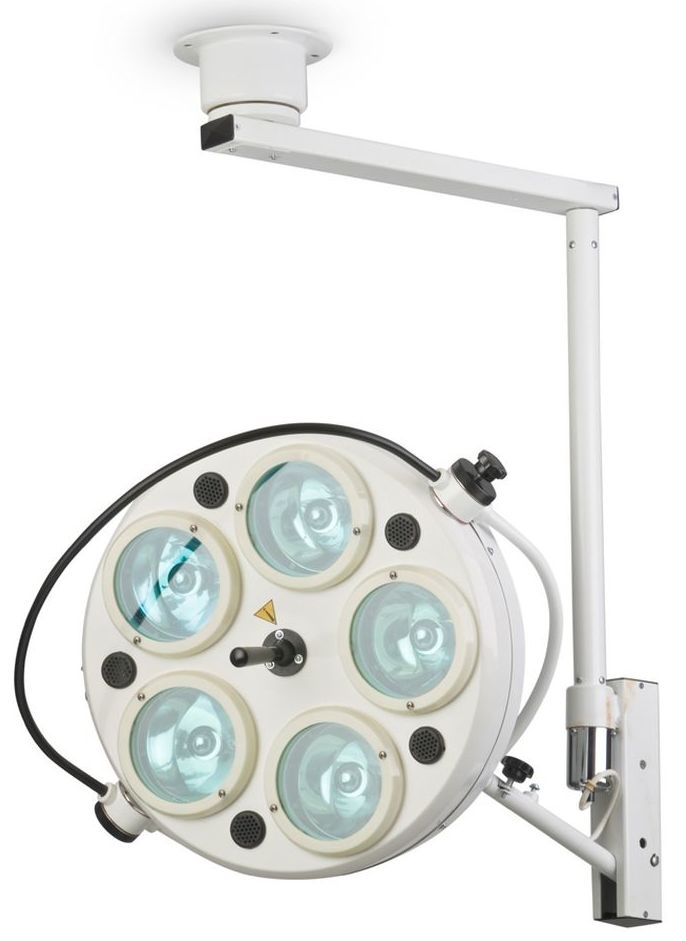 Il s'agit d'un plafonnier à haute intensité lumineuse. Selon les avis des professionnels de la santé, la reproduction des couleurs se distingue par son naturel et son absence de distorsion. Une caractéristique est la présence d'un système optique avec quelques fragments optiques lumineux. La lampe halogène a un effet sans ombre. Grâce aux réflecteurs d'interférence intégrés, l'installation a une température de chauffage minimale du champ éclairé pendant le fonctionnement.Les poignées stérilisables amovibles des blocs vous permettent d'ajuster la direction de la lumière pour une utilisation pratique et de haute qualité.