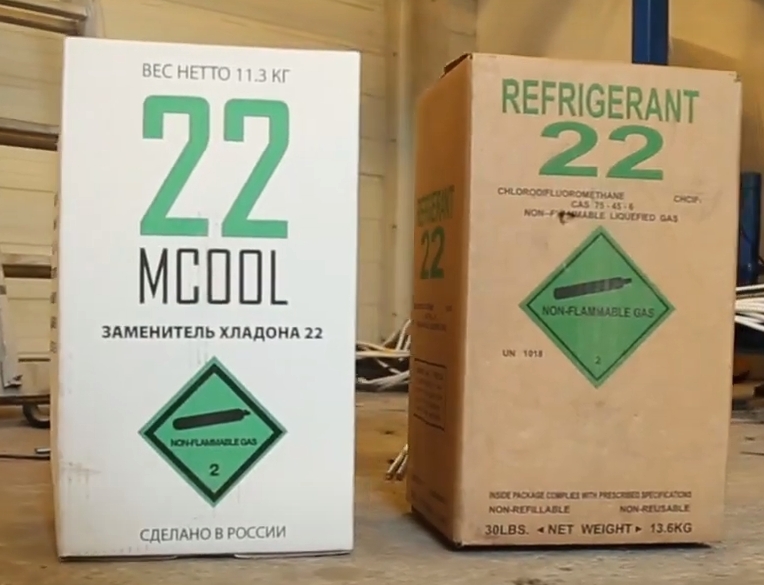 Le "R-22" fonctionne bien dans les grands groupes moto-compresseurs hermétiques. A basse t°C et haute pression, il est nécessaire de refroidir la tête de l'appareil avec de l'eau. La substance est mélangée avec succès à l'huile dans le compartiment de condensation, puis séparée de celle-ci dans le surpresseur. La conception appropriée du serpentin de l'évaporateur et des tubes d'aspiration garantit un retour d'huile sans problème vers le système. "Mcool 22" est un fluorocarbone, il est sans danger pour l'environnement et les personnes. Vous pouvez l'acheter dans des contenants réutilisables ou jetables.