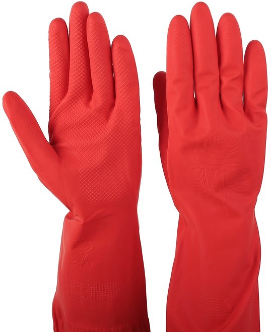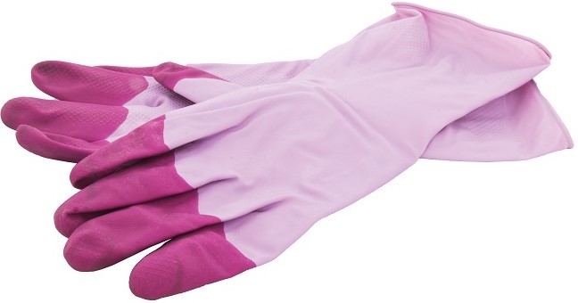 La couleur vive du modèle diversifie le nettoyage, remonte le moral. Les poignets hauts avec un bord renforcé offrent une protection maximale non seulement pour les paumes, mais aussi pour le haut du bras. Ils excluent pratiquement la pénétration d'eau et de détergents à l'intérieur. Pratique pour le jardinage, en particulier lors de la récolte lorsque vous devez atteindre les fruits à travers des buissons ou des feuilles qui peuvent vous gratter les mains. Poids : 100 gr. Prix : 259 roubles.