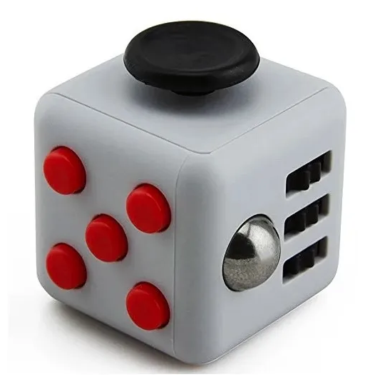 Ce cube aide à se distraire du stress dû au fait que chaque côté du jouet a son propre insert : boutons, interrupteur, cadran rotatif et divers évidements. Il est fait de plastique ordinaire, peint en gris, et les détails sont en rouge et noir. Largeur et longueur - 3x3 cm.