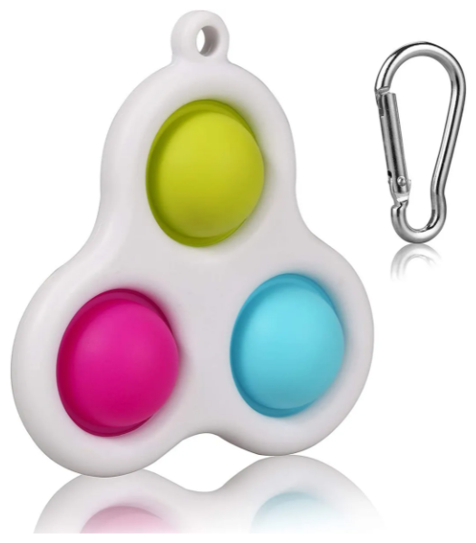 - Le pop-it et le simple-dimple sont des produits plats imitant le papier bulle, mais si le premier est entièrement en silicone et a des bulles de même taille, alors le simple-dimple a une base en plastique qui contient des bulles de silicone de différentes tailles.