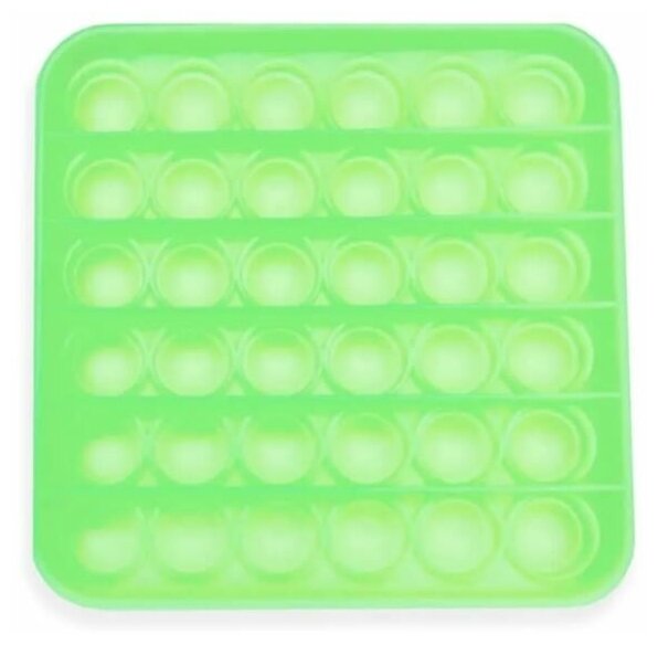 Ce pop-it est fait de silicone pur, il est donc plus doux et plus élastique que d'autres modèles similaires.Il est également infusé de peintures fluorescentes, ce qui fait briller le anti-stress dans le noir. La taille est de 12x12 cm et la forme est carrée.