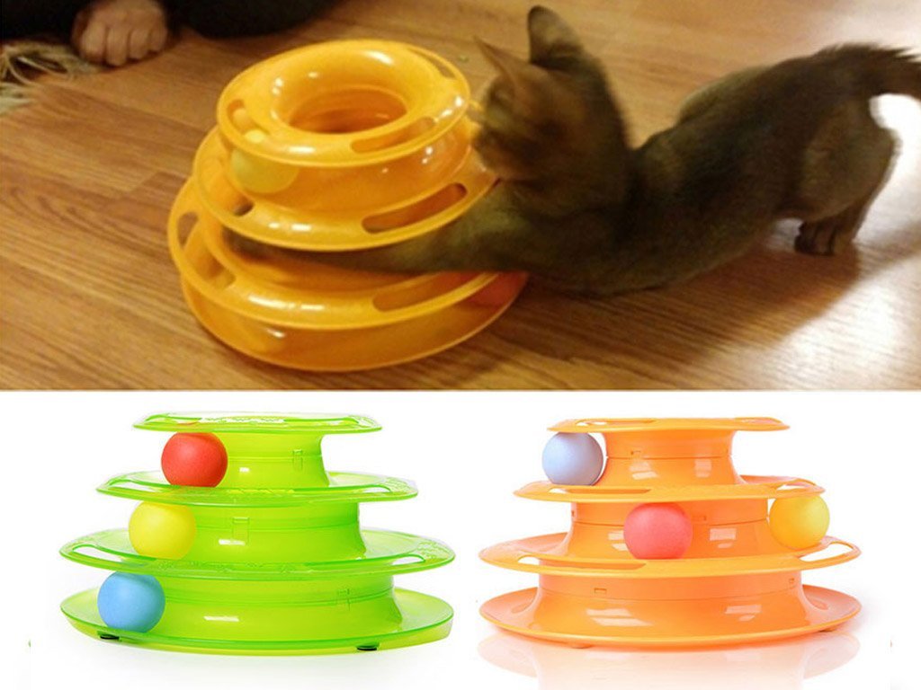 Diverses pistes de jeu-pyramides avec des balles multicolores et plusieurs étages peuvent occuper les animaux pendant longtemps. Et le carrousel de souris stimule les instincts de chasse, car les souris jouets à l'intérieur courent tout le temps, provoquant l'animal.