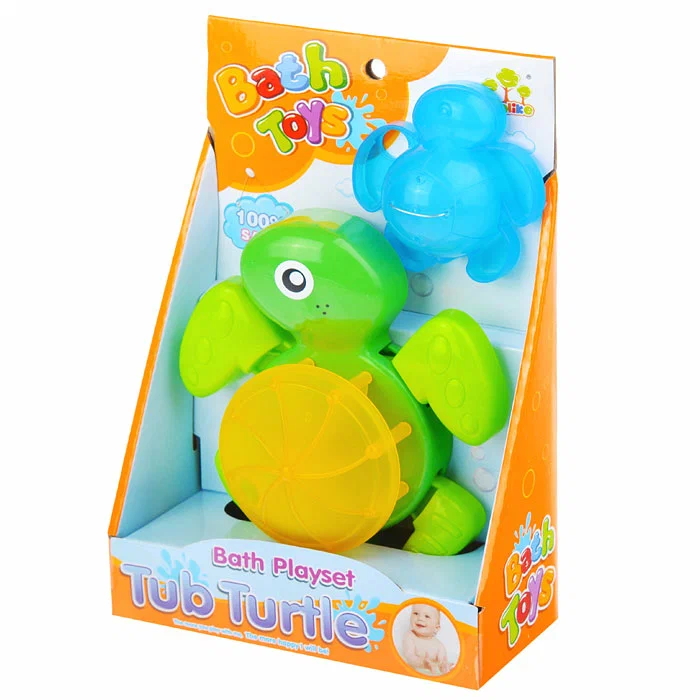 Un modèle de bain attrayant est une tortue avec un bébé. La tortue a des montures. Il est attaché au bain. La tortue peut s'amuser à éclabousser de l'eau. Lorsque vous versez de l'eau, la coquille tourne et les pattes bougent. Une variété de mouvements rend ce modèle utile pour jouer dans le bain et enseigner la réflexion. Le prix est de 800 roubles.