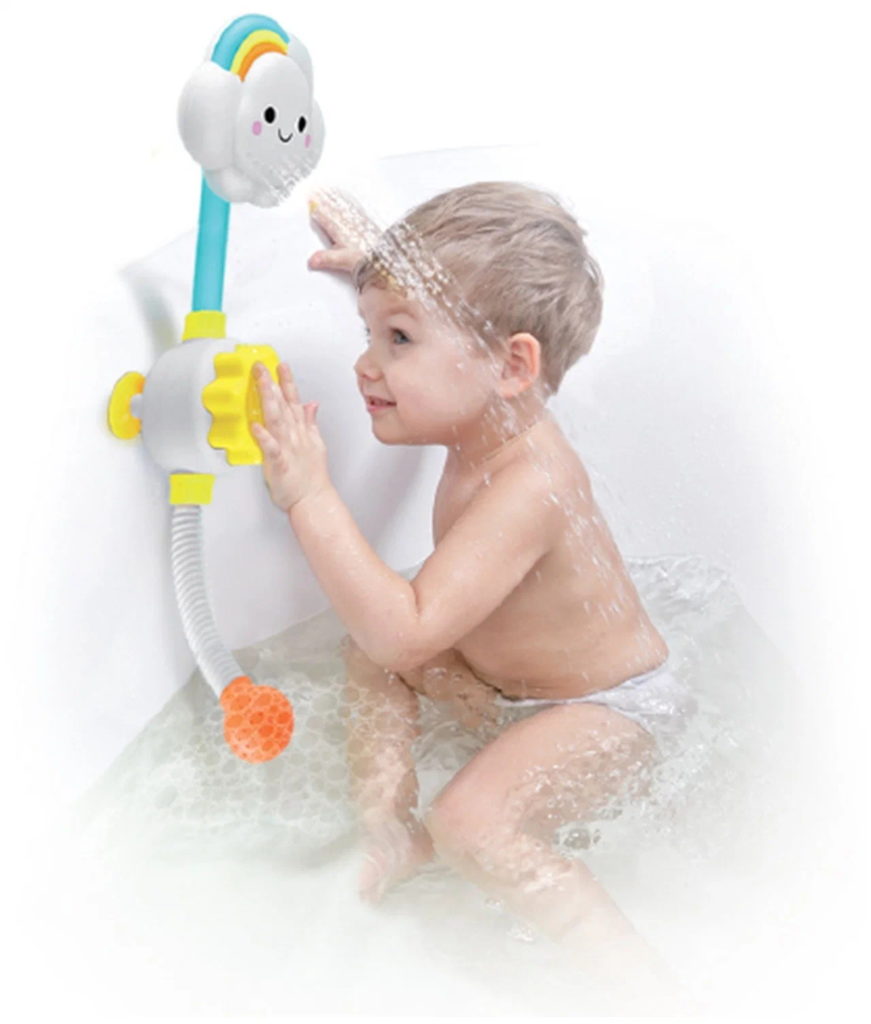 Jouet lumineux et beau. Douche en forme de nuage. Le produit a un tuyau. Lorsqu'il est pressé, une pluie merveilleuse se déverse. Cette action procure un grand plaisir au bébé. Le design est fixé au mur de la baignoire avec une ventouse. Prix - 2100 roubles