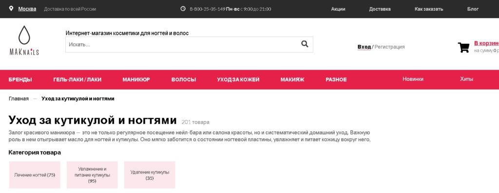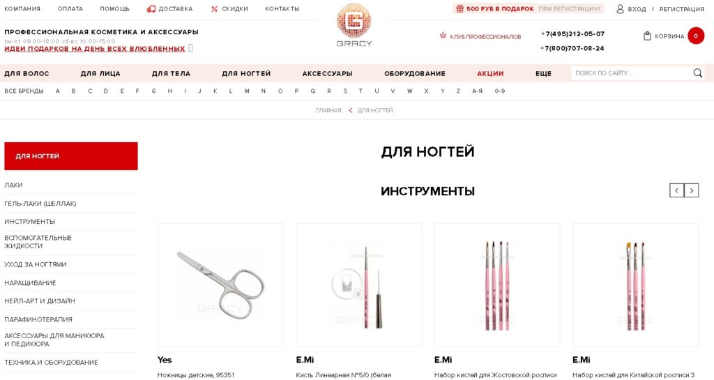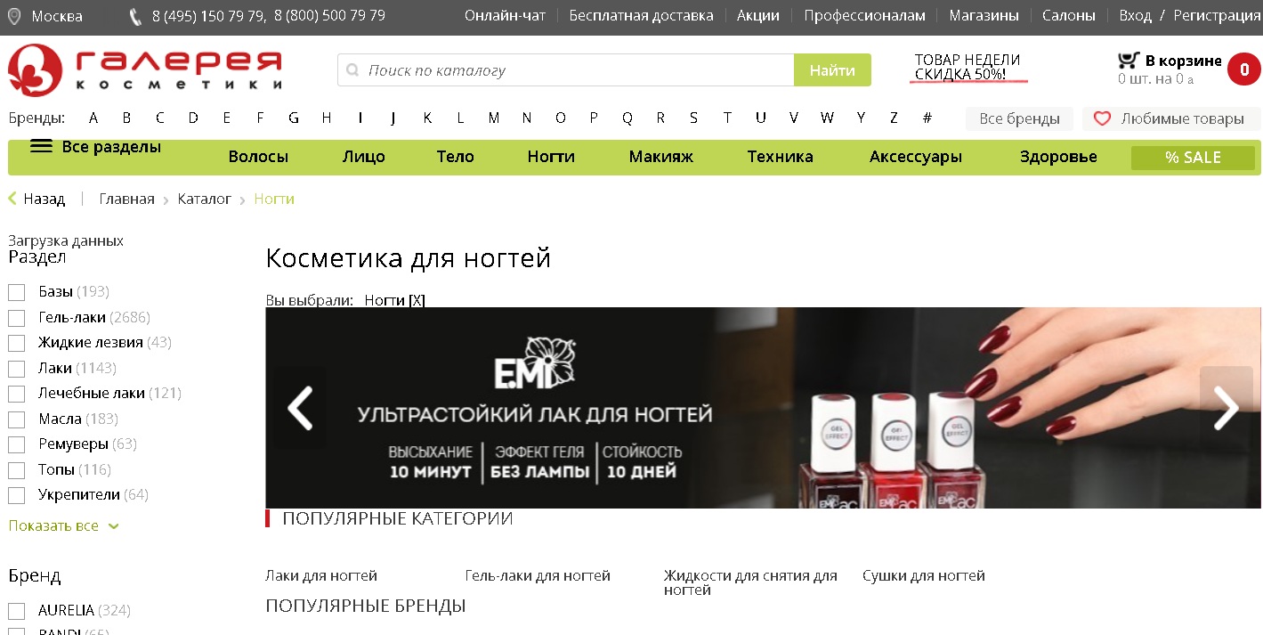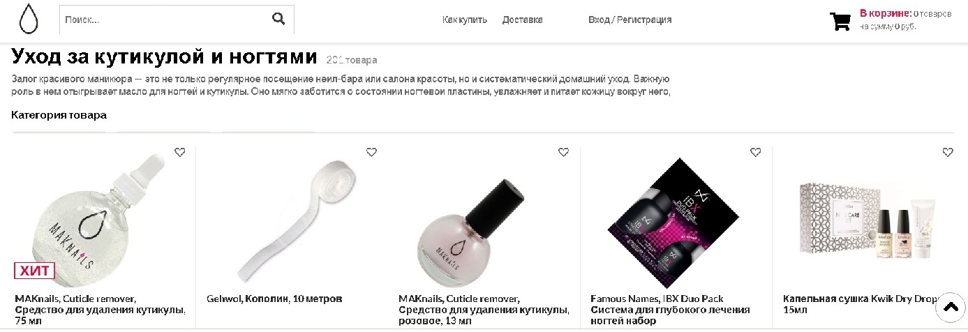 Un marché en ligne riche avec des produits non seulement pour la manucure, mais aussi une large gamme de crèmes et de lotions, est particulièrement populaire.