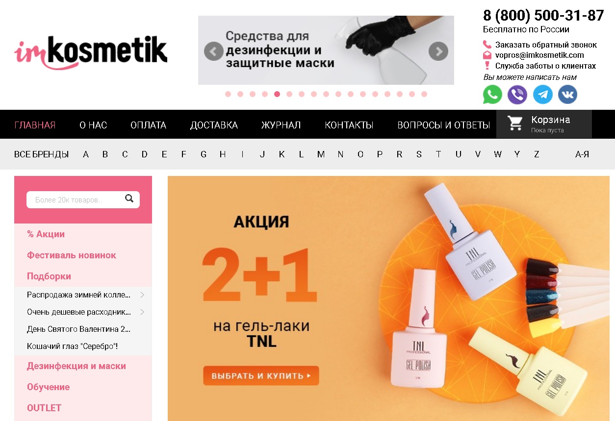 | Imcosmétique | Poste russe, courrier | ≥350 | espèces, qiwi. Yandex, carte bancaire | - |