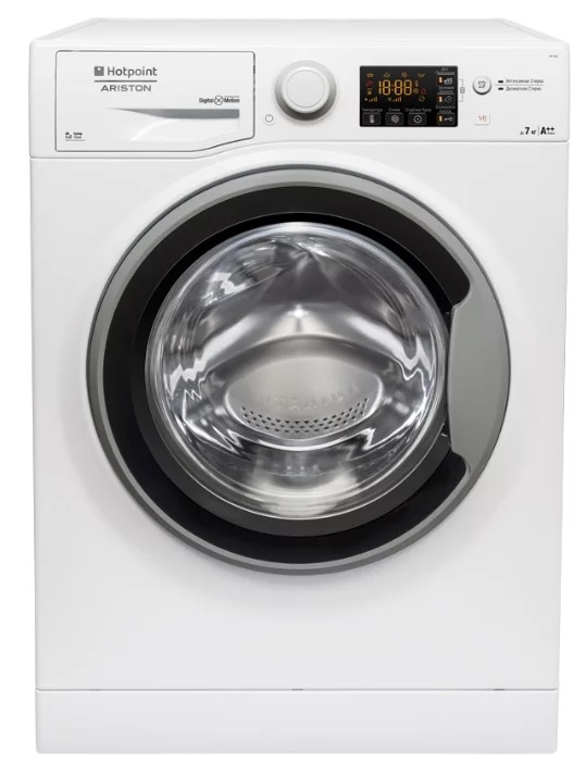 Unité de la marque Hotpoint-Ariston avec chargement frontal, système de contrôle électronique, entraînement direct et écran couleur. L'étui a une protection partielle contre les fuites d'eau, protection des enfants. Un contrôle du balourd est également établi pour le niveau de mousse. Il est possible de sélectionner la vitesse d'essorage ou de l'éteindre complètement si les tissus l'exigent, ainsi que de régler la température de fonctionnement.