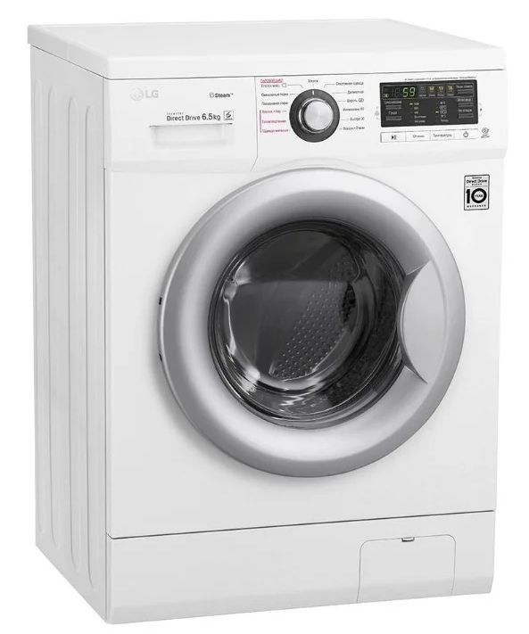 Appareils de nouvelle génération de la marque "LG" avec entraînement direct, linge à chargement frontal, contrôle électronique et possibilité d'effectuer des diagnostics via un smartphone. Il offre une protection contre les enfants, un contrôle du déséquilibre et du niveau de mousse. Le tambour à bulles est autonettoyant. Commandes - boutons + commutateur rotatif.