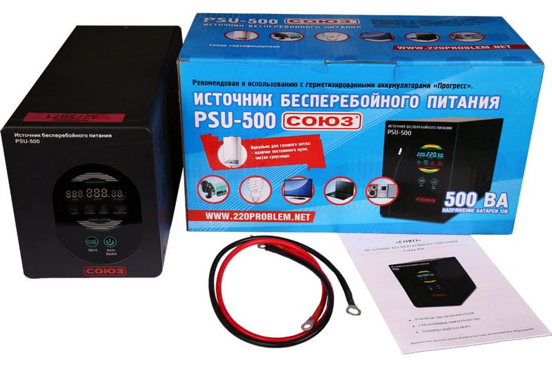 Cet échantillon convient à tous les types de chaudières, y compris celles à gaz, puisque le signal de sortie de cet onduleur est une onde sinusoïdale pure, le temps de commutation peut atteindre 4 ms. Fonctionne avec des batteries sans entretien qui peuvent être placées dans des zones résidentielles même sans ventilation ! Principe de fonctionnement : en cas de coupure du secteur, l'onduleur SOYUZ bascule instantanément sur batteries, générant 220V / 50Hz en sortie. Dès que la tension secteur apparaît, l'ASI passe en mode charge batterie, et la charge est alimentée par le secteur. Le coût recommandé pour les chaînes de magasins est de 8900 roubles.