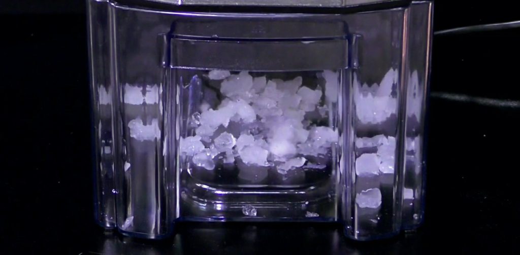 Utilisé pour préparer des cocktails, des frappes, des cafés, des desserts aux fruits, ainsi que pour décorer certains plats ou remplir un seau à champagne et à vin. Les cubes d'eau gelés sont chargés dans une ouverture spéciale du broyeur, où ils sont broyés avec des couteaux spéciaux. La machine à glace est utilisée pour produire des cubes d'eau congelés.