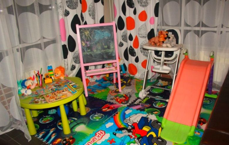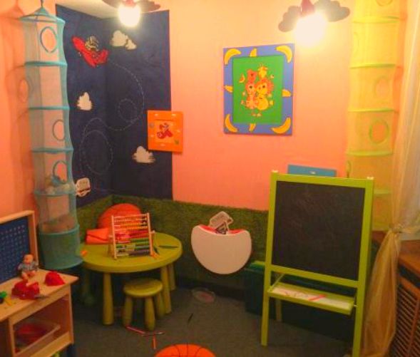 La chambre des enfants est située dans une pièce de 2x2 mètres. Les enfants peuvent dessiner et écrire sur un chevalet ou dans un album, assis à une petite table.Il y a aussi de nombreux jouets et la possibilité de regarder des dessins animés.