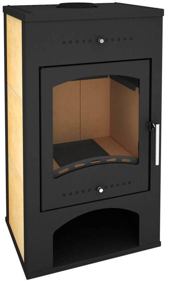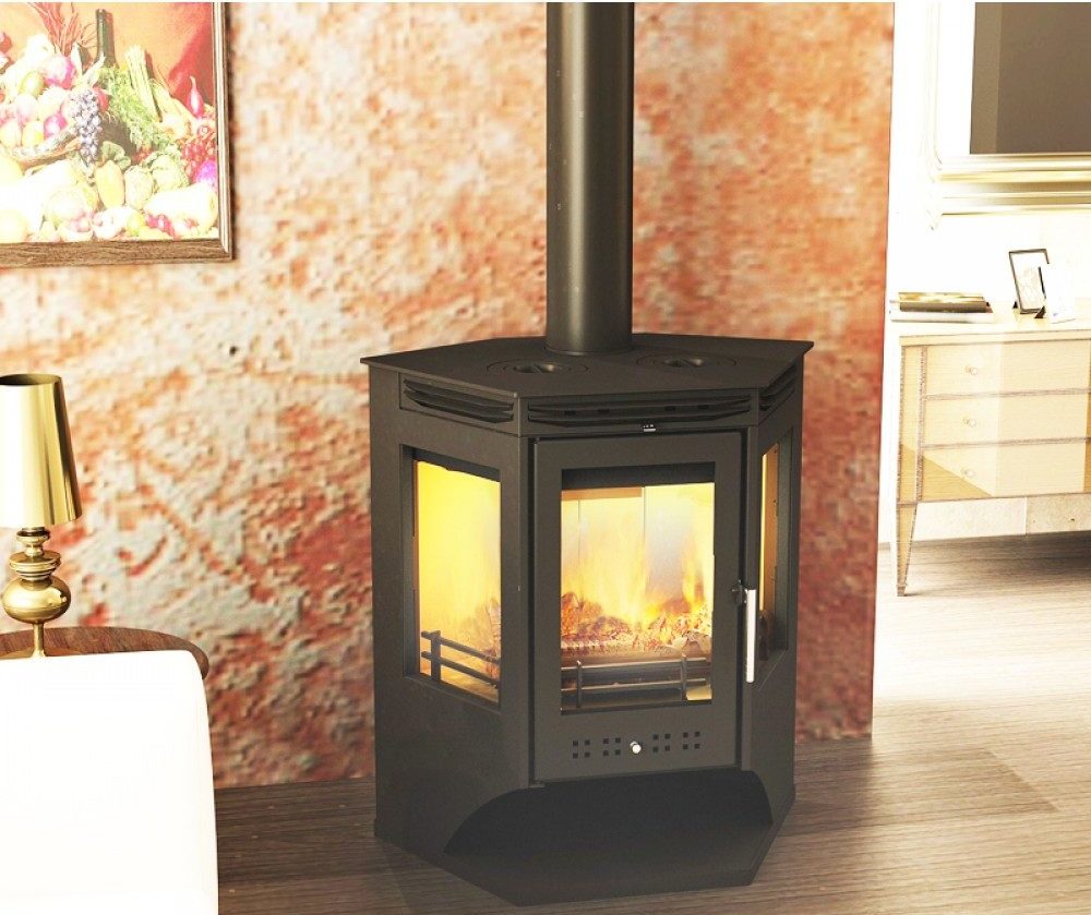 Le coût est de 49 mille roubles. en moyenne, la puissance est de 10 kW, les capacités thermiques sont de 100 mètres carrés. m., avec un poids de 105 kg. Appareil en acier revêtu d'une peinture ignifuge, conçu pour les zones à climat principalement chaud. Il est à noter qu'il y a un compartiment pour le bois de chauffage et l'assemblage à partir de pièces commandées à l'étranger. De plus, le fabricant fabrique ce modèle conformément aux normes et aux exigences de montage allemandes. Il y a la possibilité de contrôler l'intensité du four, une seule portion de combustible est de 3-4 kg. Le verre des volets est résistant au feu, l'utilisateur a la possibilité de contempler le foyer. La chambre est finie avec des matériaux spécialisés qui équilibrent la température de combustion et ont un effet prolongé. La forme du boîtier permet non seulement une installation dans le coin, mais au milieu du mur.