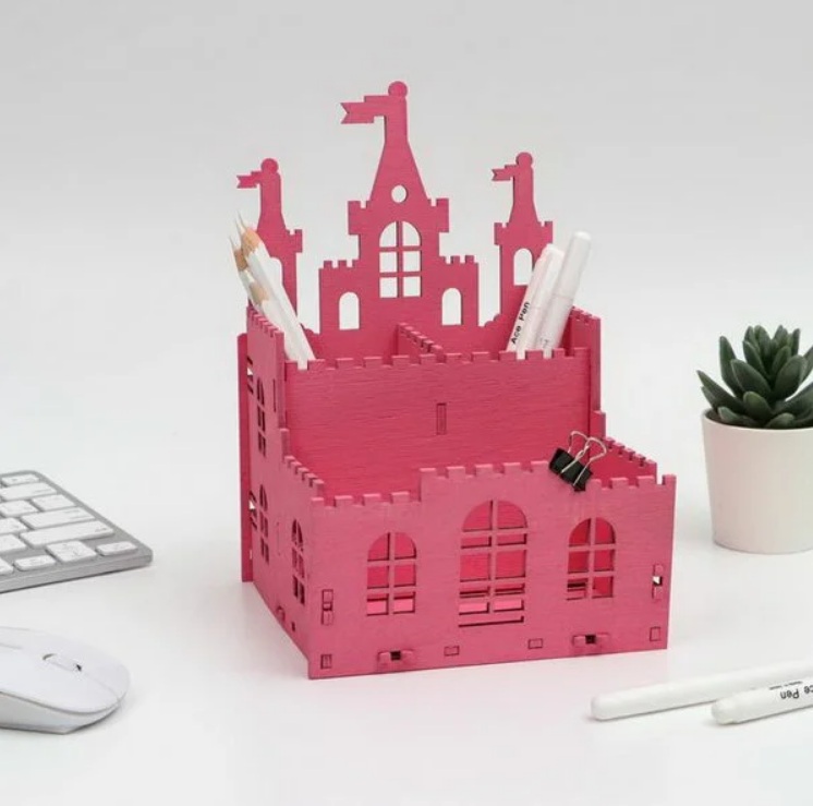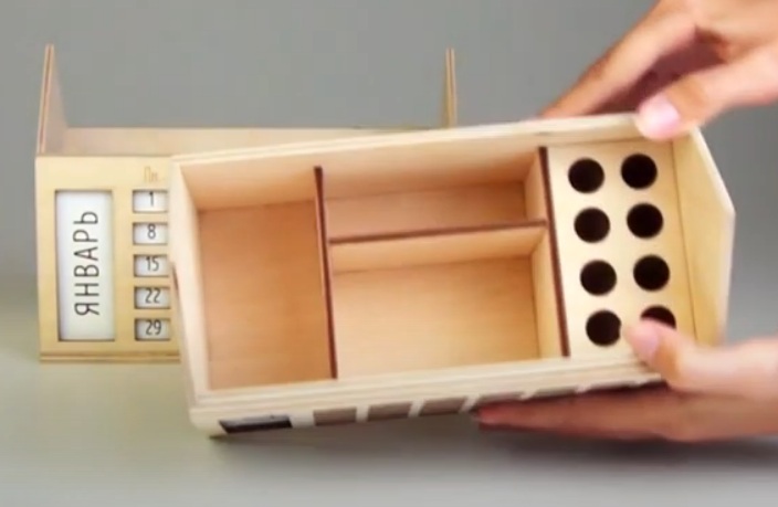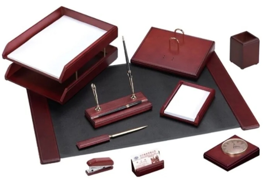 La boxe de bureau peut avoir une forme cubique et arrondie, les étuis à crayons de bureau et les poches à plusieurs niveaux sont très répandus. Les accessoires pour enfants prennent souvent la forme de maisons ou de voitures fabuleuses, de locomotives.