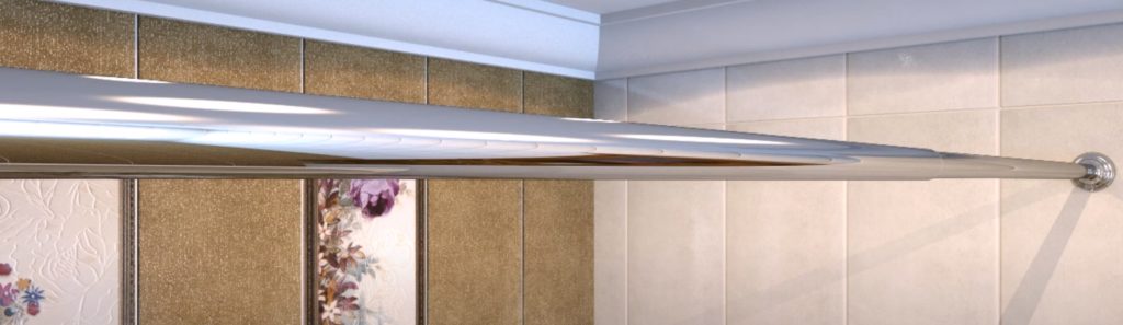 À la 4ème place, il y a un support pour rideaux de Russie, avec un design télescopique, Milardo. Il s'étend de 1,1 à 2 m, selon les dimensions de la salle de bain. Cette gamme est plus adaptée aux petites pièces.